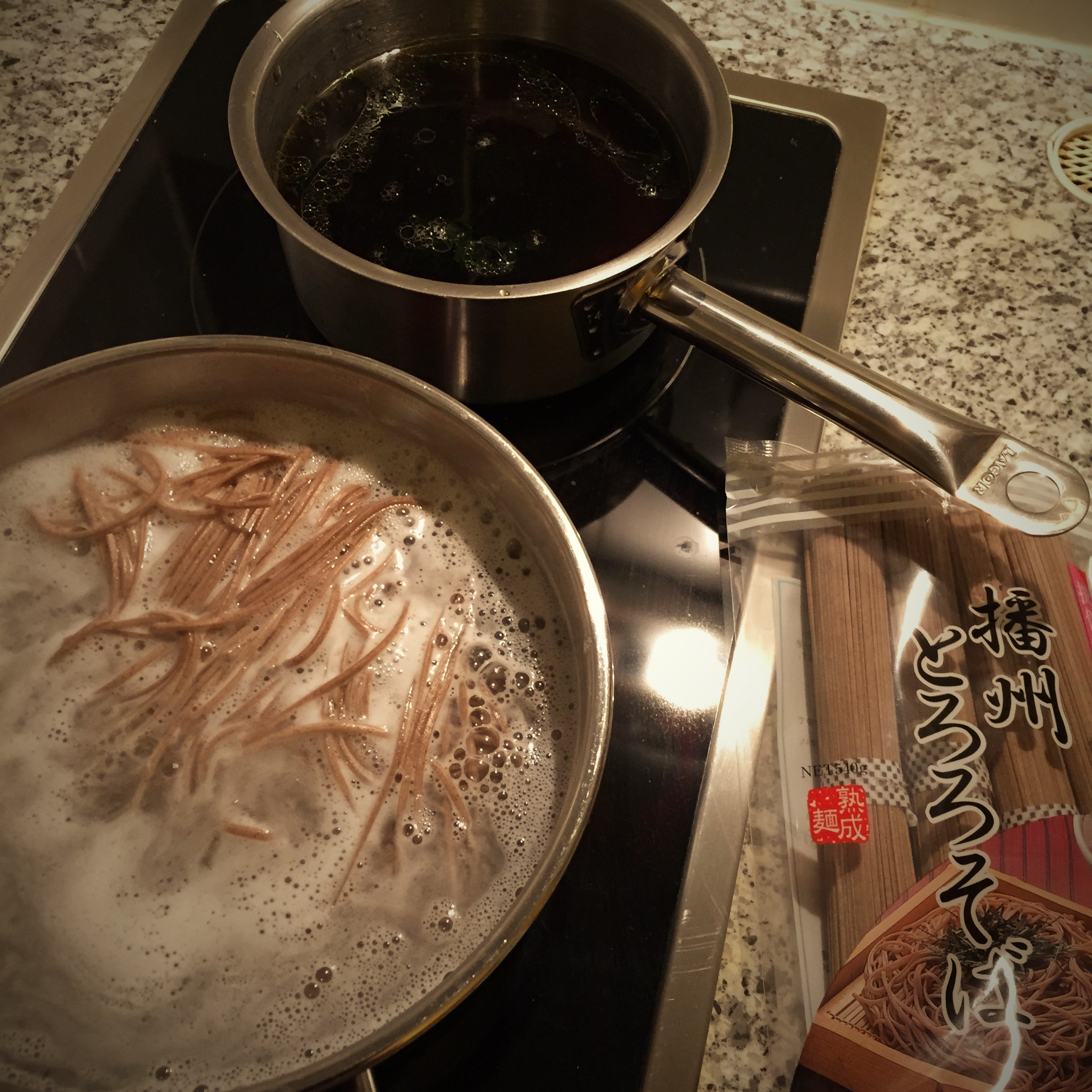 そばを茹でたり、